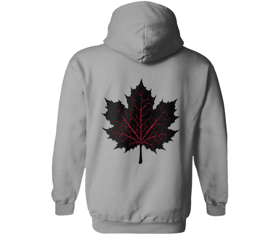 Worn but not broken, the Maple Leaf Hoodie reminds us that strength often grows where the fire once burned